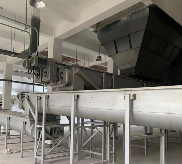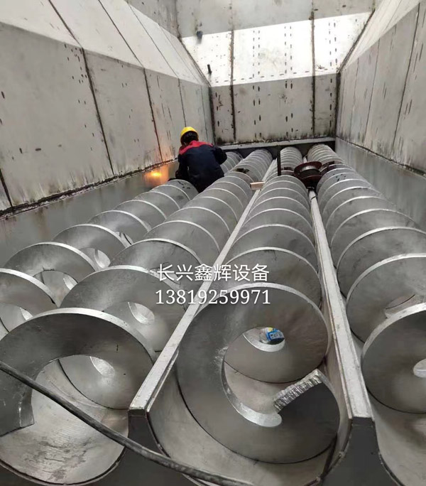 餐廚垃圾料倉式螺旋輸送機 此設備可根據用戶要求進行定制,服務熱線:13819259971 餐廚垃圾輸送機也叫餐廚垃圾無軸螺旋輸送機是一種利用電機帶動螺旋回轉,推移物料以實現輸送目的的機械。它能水平、傾斜或垂直輸送,具有結構簡單、橫截面積小、密封性好、操作方便、維修容易、便于封閉運輸等優點。 餐廚垃圾螺旋輸送機在輸送形式上分為有軸螺旋輸送機和無軸螺旋輸送機兩種,在外型上分為U型螺旋輸送機和管式螺旋輸送機。 有軸螺旋輸送機適用于無粘性的干粉物料和小顆粒物料。(例如:水泥、粉煤灰、石灰、糧等)而無軸螺旋輸送機適合輸送機由粘性的和易纏繞的物料。(例如:污泥、生物質、垃圾等) 餐廚垃圾輸送機可輸送傳統有軸螺旋輸送機和皮帶輸送機不能或不易輸送的物料,如顆粒狀和粉狀物料、濕地和糊狀物料、半流體和黏性物料、易纏繞和易堵塞物料、有特殊衛生要求的物料。 餐廚垃圾輸送機的工作原理是旋轉的螺旋葉片將物料推移而進行螺旋輸送機輸送,使物料不與螺旋輸送機葉片一起旋轉的力是物料自身重量和螺旋輸送機機殼對物料的摩擦阻力。螺旋輸送機旋轉軸上焊的螺旋葉片,葉片的面型根據輸送物料的不同有實體面型、帶式面型、葉片面型等型式。螺旋輸送機的螺旋軸在物料運動方向的終端有止推軸承以隨物料給螺旋的軸向反力,在機長較長時,應加中間吊掛軸承。